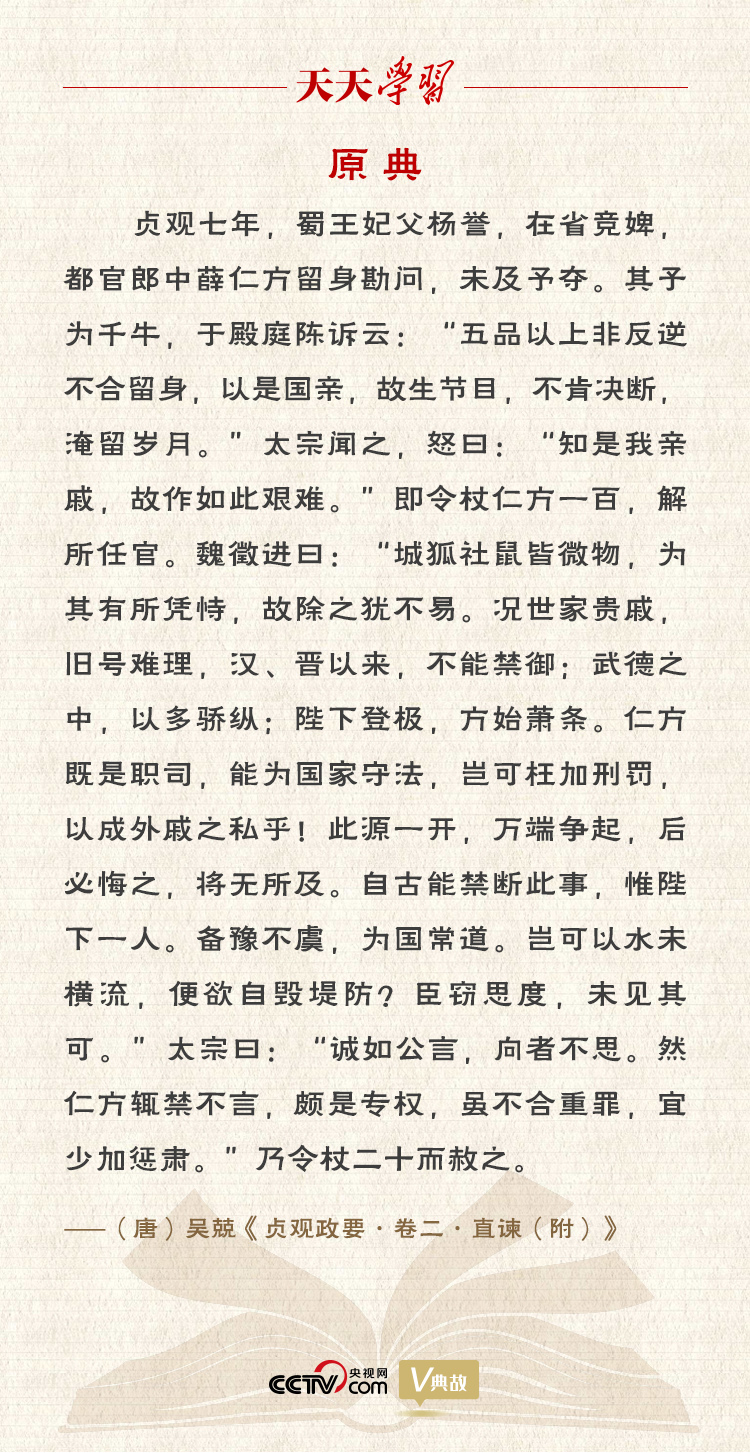 魏徵觉得唐太宗的做法非常不妥,便进谏道:“薛仁方作为国家官吏,奉公守法,怎么能够枉加处罚,让外戚的私欲得逞呢?此例一开,事端争起,将来必然追悔莫及。”劝谏太宗“备豫不虞,为国常道”,太宗听后有所触动。