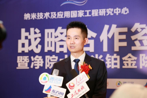 11月9日,纳米技术及应用国家工程研究中心与上海可佑纳米科技有限公司战略合作签约仪式暨净院士纳米铂金除醛新品发布会在纳米技术及应用国家工程研究中心举行。