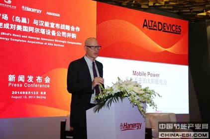 阿尔塔设备公司总裁兼首席执行官ChrisNorris表示:“本次并购是基于阿尔塔与汉能对太阳能前景判断一致的自然结果,我们认为柔性化、薄膜化是光伏行业发展的未来。汉能拥有雄厚的技术、研发和资金实力,与阿尔塔在太阳能电池技术方面的研发创新相补充,会进一步提升阿尔塔的技术实力与产能,扩大应用领域。”