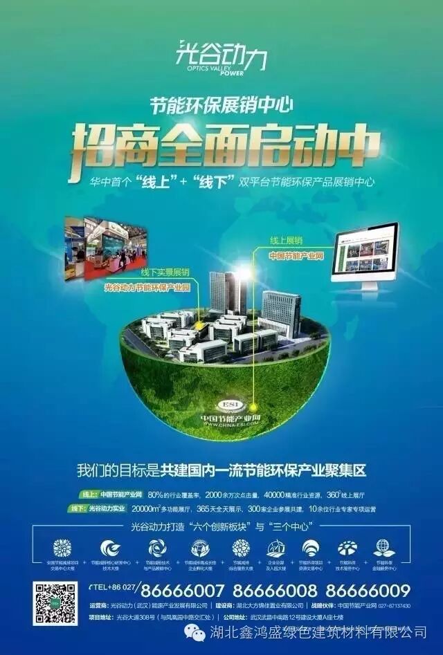 2016年初,湖北鑫鸿盛绿色建筑材料有限公司和光谷动力节能环保产业园就园区内建筑外墙保温达成合作,秉承着绿色环保的合作宗旨。湖北鑫鸿盛EPS外贴产品的运用将全面降低其房屋能耗,提高房屋品质。