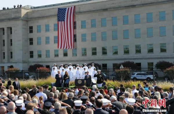 2019年9月11日,五角大楼“9·11”事件18周年纪念仪式,美国总统特朗普出席。 中新社 陈孟统 摄