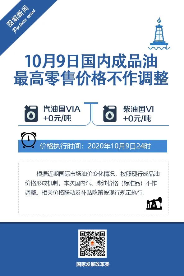 国家发展改革委微信公号10月9日消息,当日,国内成品油价格不作调整。