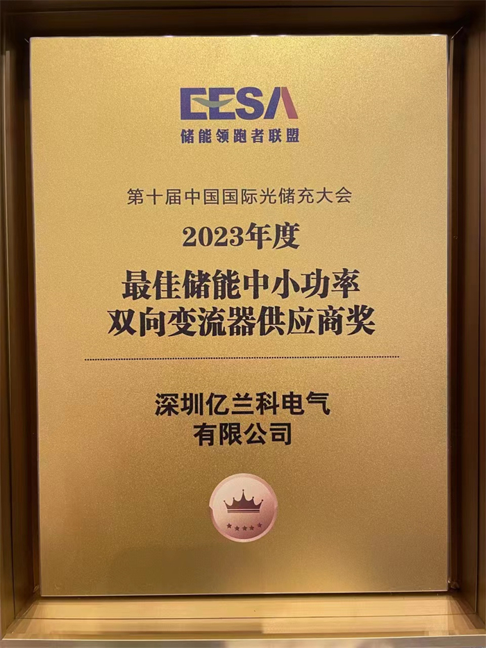 为表彰对工商业储能的卓越贡献,本次大会从影响力、发展力、口碑力、创新力、产品力等纬度出发,历时两月激烈角逐,最终,作为工商业模块化储能领先者的亿兰科电气,凭借出众的产品,实力领航,斩获“2023年度最佳储能中小功率双向变流器供应商奖”。