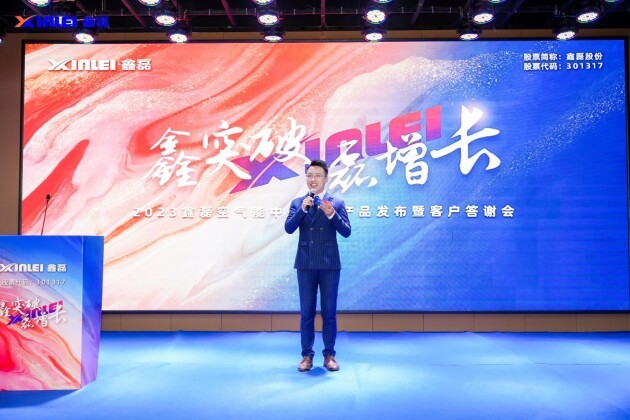 鑫磊股份钟佳妤发表了精彩致辞,对与会嘉宾表达了感激之情。她介绍到,作为行业龙头企业,鑫磊自主研发生产的空气能产品横跨活塞、螺杆、磁悬浮离心全流体板块,获得了300 余项授权专利,被评为国家级“专精特新”小巨人企业。