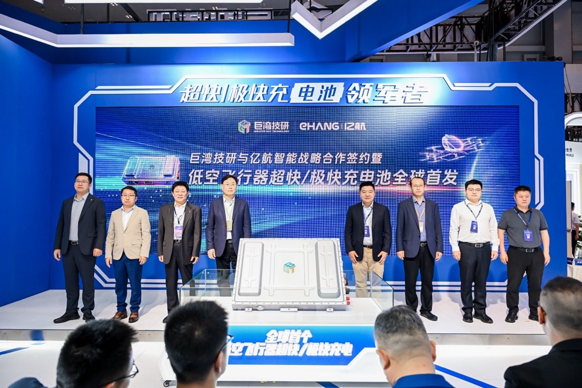 此次合作,是两家领军企业的强强联合。亿航智能作为全球领先的城市空中交通科技企业,其旗舰产品EH216-S已经获得中国民航局颁发的全球首张无人驾驶载人eVTOL航空器型号合格证(TC)、生产许可证(PC)和标准适航证(AC)“三大通行证”。巨湾技研则在超快充/极快充电池领域占据领先地位,2023年在超快充电池的细分市场取得了出货量全行业第一,其自研的巨湾7Min极速电池创造了世界纪录认证机构(WRCA)的“最快电动汽车充电技术”世界纪录。