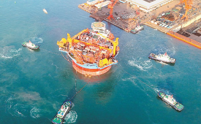 5月12日,由中国自主设计建造的亚洲首艘圆筒型“海上油气加工厂”——“海葵一号”从中国海油青岛国际化高端装备制造基地离港启运,为中国首个深水油田二次开发项目年内投产奠定基础。