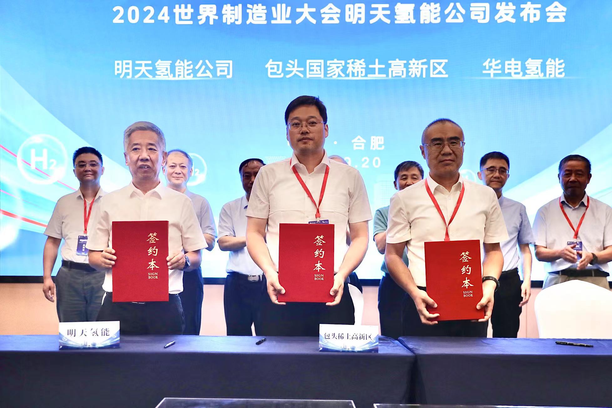 发布会上,明天氢能公司与包头国家稀土高新区、华电氢能、大唐国际陡河热电、晋南钢铁、福龙马集团等战略合作伙伴共同签署“风光氢储用”一体化、氢能及通勤车、氢能重卡及环卫车等系列项目合作,共同探索氢能产业合作新模式。在全国大力发展新质生产力,加快经济社会发展全面绿色转型的重要战略期,新质明天为建设清洁高效的能源生态体系再踏新征程。
