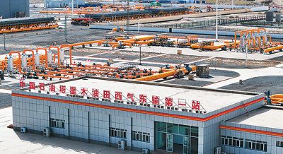 位于新疆维吾尔自治区巴音郭楞蒙古自治州轮台县境内的中国石油塔里木油田公司西气东输第一站。  新华社记者 王 鹏摄