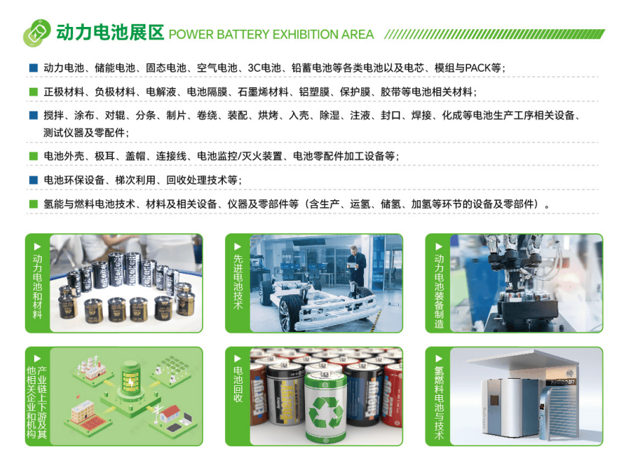 第十七届上海国际电池工业展览会、第十六届上海国际超级电容器产业展览会将集中展示多种电池技术和应用、超级电容器技术,包括各系列电池、各种组合电池、动力电池及管理系统、充电桩、充换电站及相关配套设施、储能应用及EPC工程、移动电源及相关产品、氢能及燃料电池技术与设备、电池用生产设备、测试仪器、原材料、零部件等。超级电容器包括组合型超级电容器、叠片型超级电容器、极片、活性炭、电解液、隔膜、集流体等超级电容材料及原材料、添加剂、超级电容器生产和制造设备,检测仪器和设备、石墨烯材料及石墨烯超级电容器、应用于工业及消费类电子、交通运输、电梯节能、绿色能源的各类超级电容器及其成果产品展示。