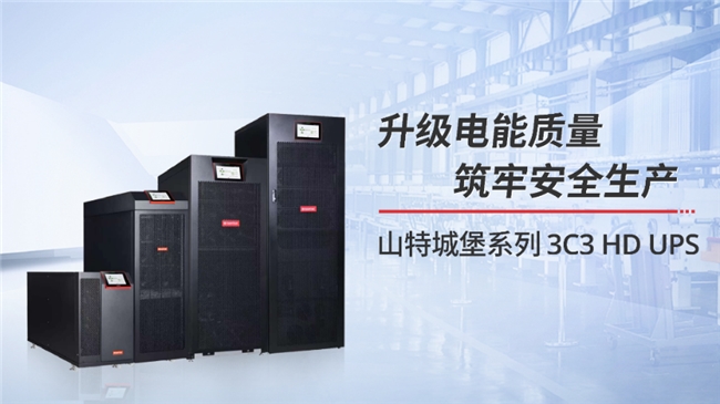 山特城堡系列 3C3 HD UPS 输出功率因数 1.0,采用新一代 IGBT 和三电平技术,在线效率高达 96%,ECO 模式下效率可达 99%,显著降低车间供电系统能耗和初始投资。支持 4 台 UPS 并机,无线并联技术降低单点故障概率;虚拟负载测试功能、便捷的设备管理和远程监控,提高运维效率,为后端设备提供更为可靠、连续的电力供应,避免了因电力中断导致的生产停滞。