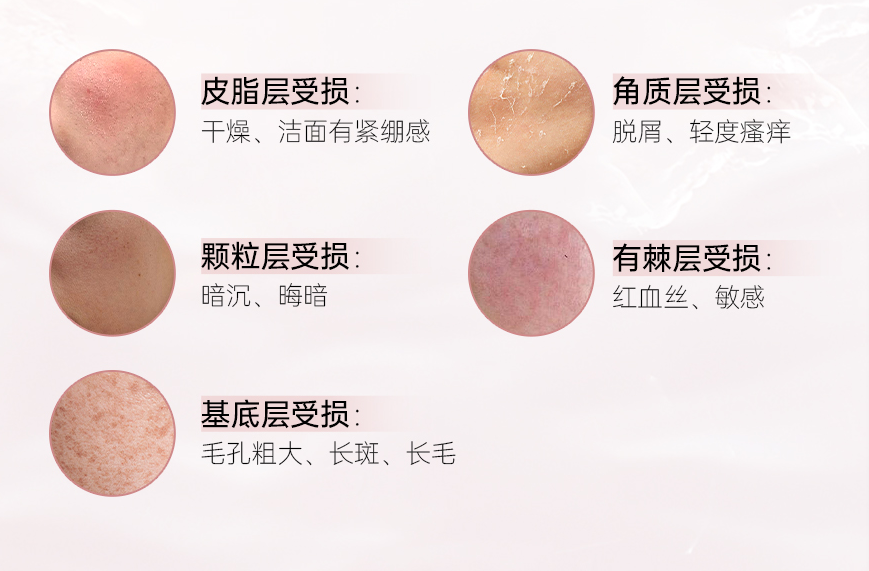 敏感型:接触性皮炎、玫瑰痤疮、屏障受损型敏感肌。