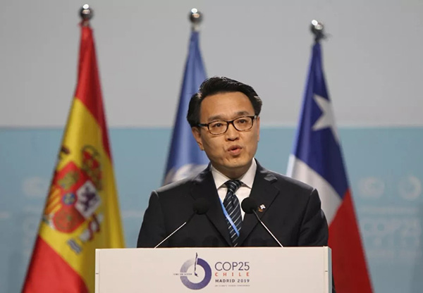 12月10日起,2019年联合国气候变化大会开始高级别会议,就尚未解决的问题继续展开磋商。当地时间12月11日,中国生态环境部副部长、中国代表团团长赵英民出席联合国气候变化高级别会议并代表中国发言。