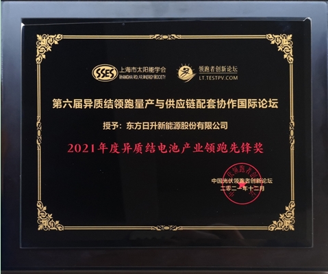 异质结电池产业年度奖项的评选旨为表彰异质结产业链领跑企业在技术创新、示范应用、量产推广等方面作出的卓越贡献。2021年12月16日,在TUV南德权威认证下,东方日升宣布高效异质结系列组件最高功率达到721.016W,组件效率高达23.65%,这是公司一年内第三次刷新自己创造的异质结世界纪录。作为较早布局N型异质结技术的光伏企业,东方日升以技术升级引领行业进步,以领先优势高筑公司N型技术护城河,“领跑先锋”即是对公司创新实力的最佳褒奖。
