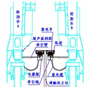 3、首次将超声波测距技术应用于RTG的自动纠编与防碰撞安全保护。采用超声波测距装置连续测量RTG与集电车轨道之间的距离,以此控制大车两侧运行电机运行,实现了大车行走的自动纠编或停机。