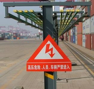 高架滑触线供电方式是通过架设高空铜滑线来实现上电,RTG可以像公交电车那样从头顶上的高压电线获取电力能源。