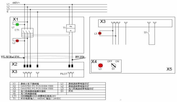 为确保拔插电时操作人员安全,在集电车上设计安装了电源接触器箱,并在ERTG上增设电源控制箱(电压24V)。操作人员进行插拔电作业时,先按电源控制箱上的断电按钮,切断电源,保证操作人员在无电状态下操作。一旦操作者误操作,直接拔电源插头,该插头独特设计的控制回路会自动断电,保证操作者不会发生触电事故。