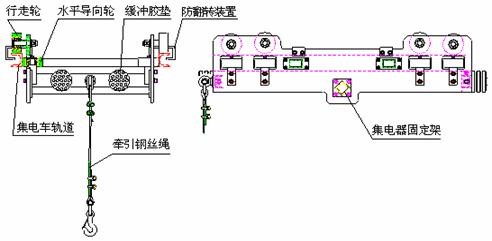 为适用ERTG跑偏、晃动的特性,ERTG与集电车之间采用柔性牵引,消除了两者之间相对位置变化对集电小车的影响,保证了刚性滑触线对ERTG的正常供电。
