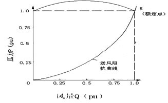 图2.2(a)为采用第一种方法时的特性 ,管路的节流阻力改变时,可以得到所需的送风特性。图2.2(b)为调速情况下风机的运行特性图中(pu)均采用标么值。