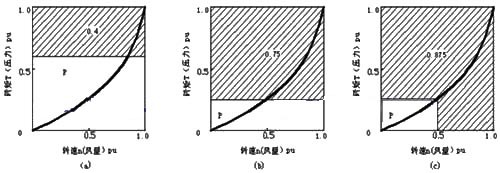 图中划斜线部分的面积表示风量调到0.5(Pu)时的节电量。变频调速的情况下所需电源功率仅为全风量的12.5%当然这是理想情况下得到的结果。