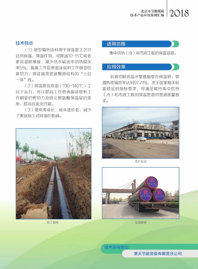 该产品将喷涂发泡原料按比例混合,喷涂在管道表面,可迅速凝胶形成泡沫层,保证直埋管道钢管、聚氨酯保护层和外护套整体结构的“三位一体”性,能够有效降低界面层温度,阻止聚氨酯泡沫层发生烧蚀碳化。