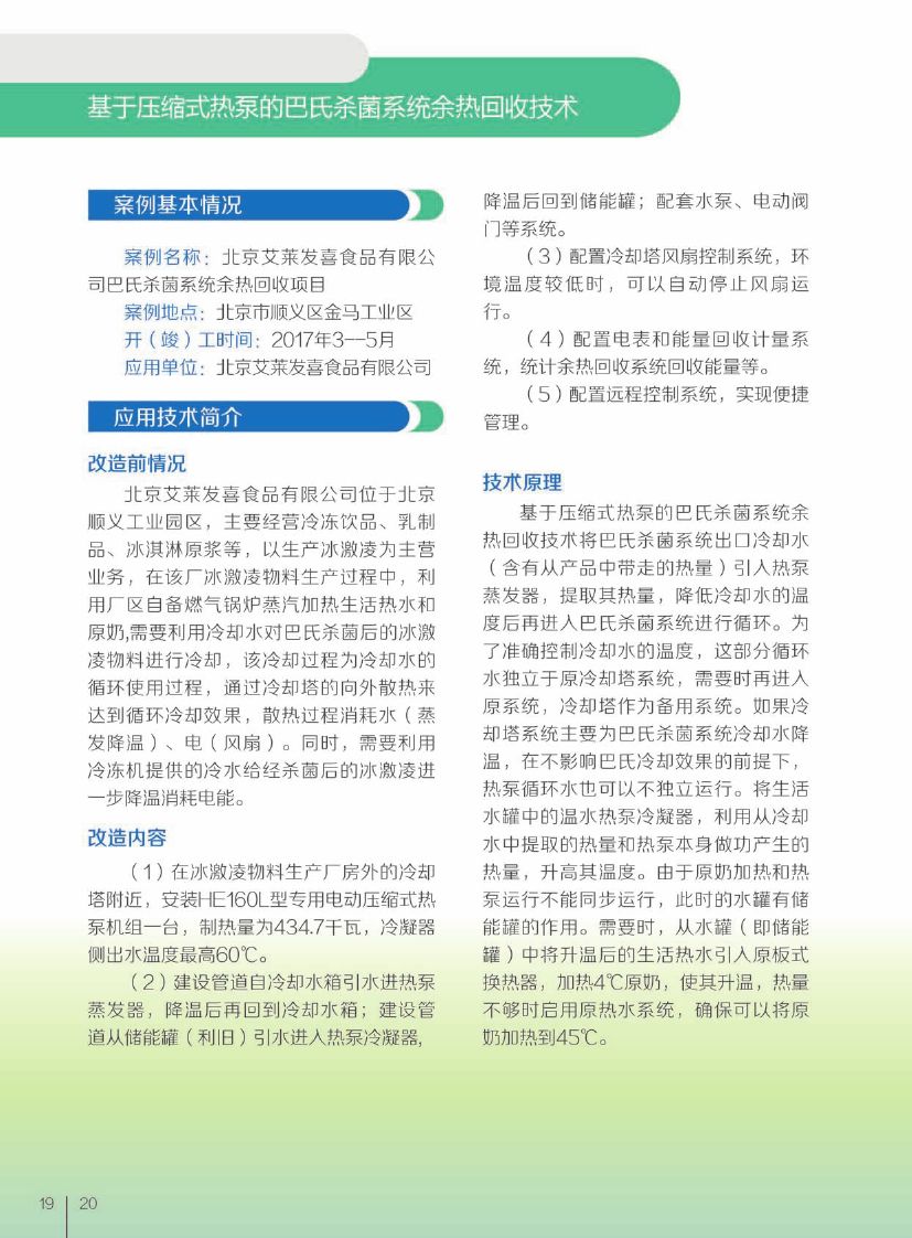 基于压缩式热泵的巴氏杀菌系统余热回收技术——应用案例:北京艾莱发喜食品有限公司巴氏杀菌系统余热回收项目